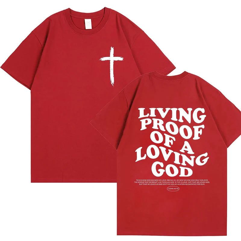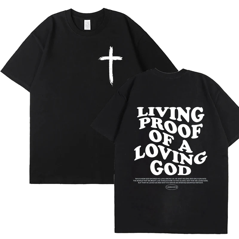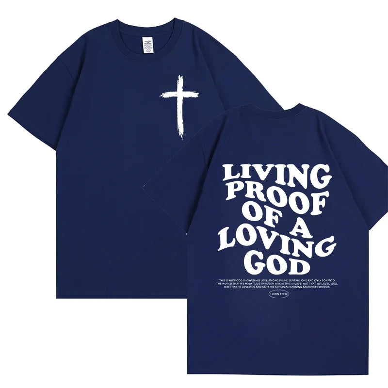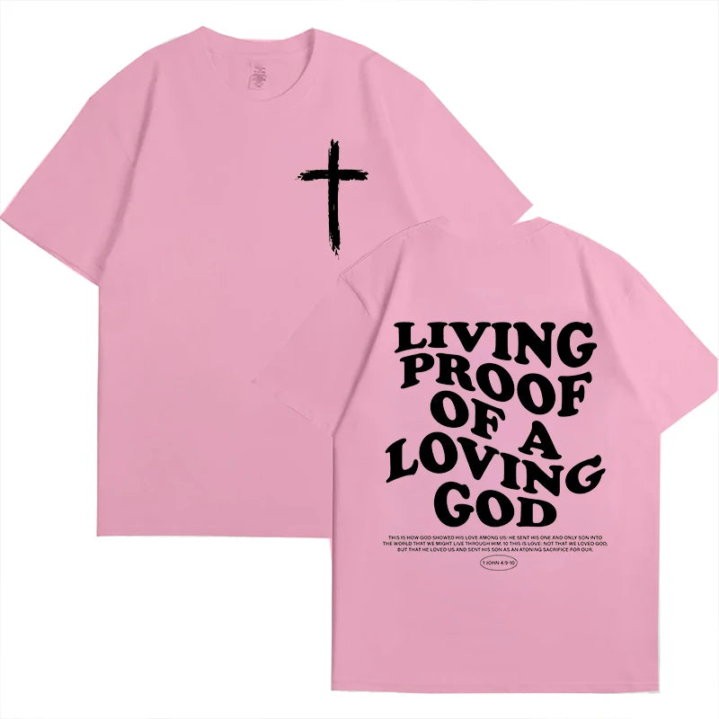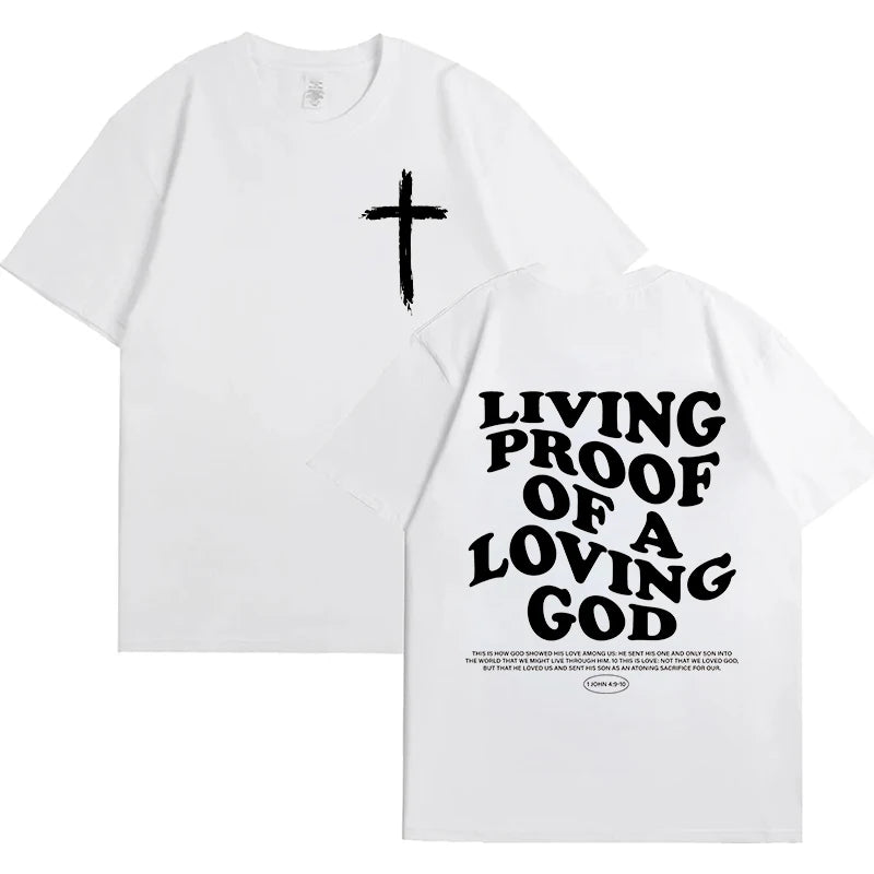 The 'Living Proof of A Loving God' t-shirt is more than apparel—it's a declaration of faith and gratitude. This inspirational Christian tee features elegant letter print graphics that share a powerful message of God's love wherever you go.