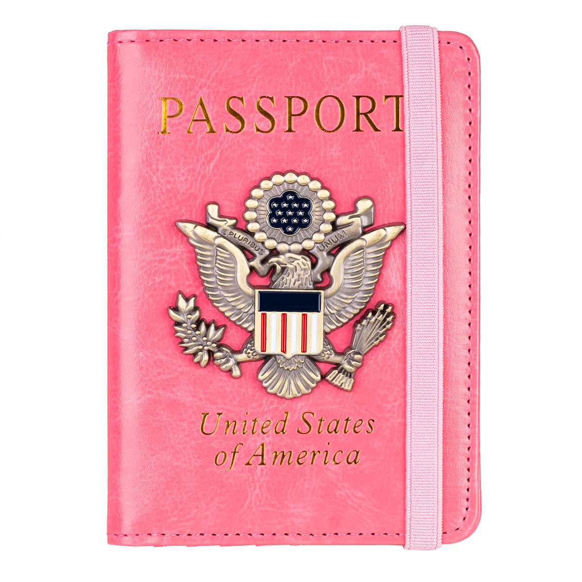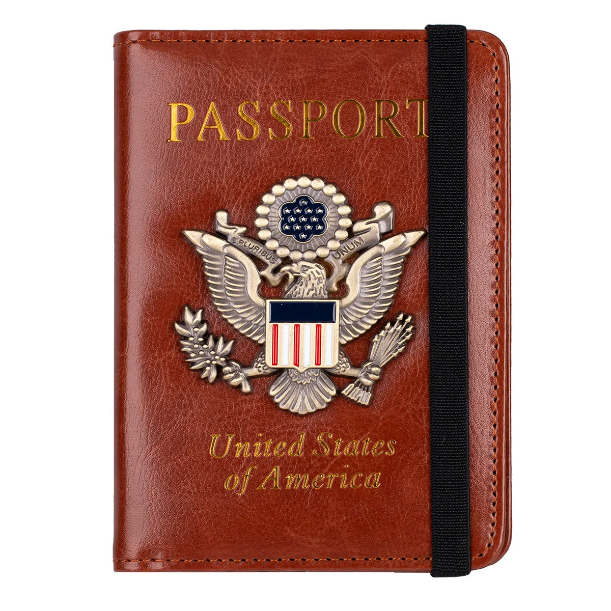 The RFID Blocking Leather Passport Holder combines sophisticated style with advanced security technology. Featuring a distinctive 3D metal badge and premium PU leather construction, this travel document organizer keeps your passport and personal information safe from electronic theft while you explore the world.